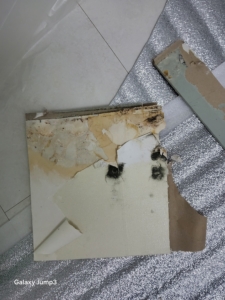 • 내부를 확인한 결과, 석고보드까지 곰팡이 침투가 있어 오염된 석고보드를 절단 및 철거.