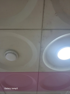 조명 및 환기구 주변에 원형 패턴 곰팡이 집중 발생