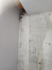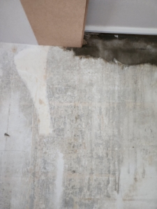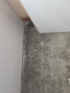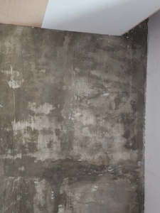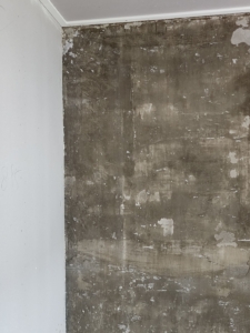 • 오래된 벽지 제거 후, 콘크리트 면에 검은곰팡이 흔적이 드러난 상태였습니다.