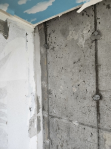 일부 콘크리트 벽에는 방습 퍼티 및 결로방지 프라이머 사용.