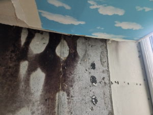 특히 창문 주변과 천장 코너는 완전 탈거하여 내부 상태를 드러냄.