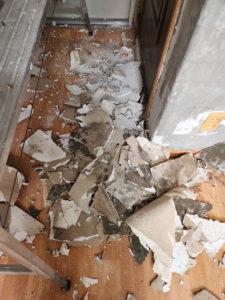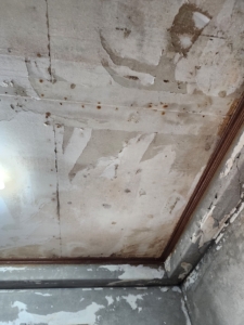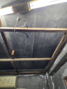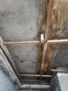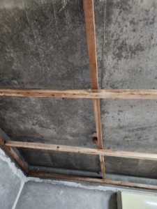 석고보드를 덮기 전, 콘크리트 천장과 남겨진 골조에 대한 살균 처리가 필수입니다.