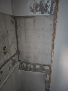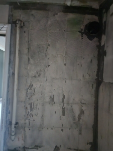 싱크대 철거 후 하부 벽면 곰팡이 제거