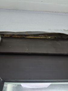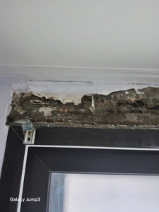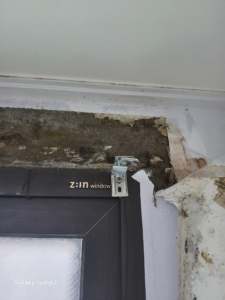 벽지 뒤편과 창틀벽면에 곰팡이가 깊게 침투