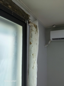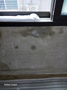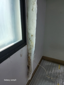 사진에서 확인되듯이 창문 주변과 벽체 전체에 곰팡이가 심각하게 번식한 상태였습니다.
