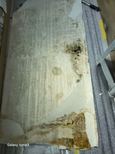오염된 벽지를 전면 철거 후 벽 내부 곰팡이 상태를 확인