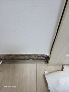 곰팡이 감염 부위의 벽지, 석고보드, 목재틀을 완전 철거했습니다.