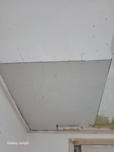 벽면과 천장 모두 새 목재틀 보강 후, 석고보드 재시공을 진행했습니다.