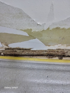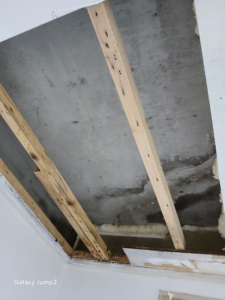 천장부 또한 누수 흔적과 함께 목재틀이 곰팡이로 오염되어 있었습니다.