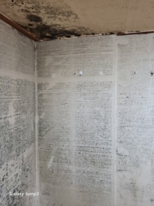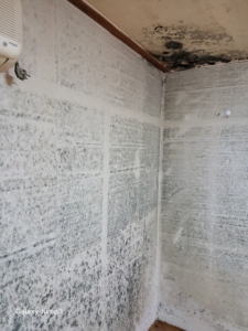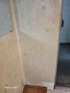 벽면 일부는 표면 곰팡이뿐 아니라 깊이 스며든 흑곰팡이 확인.
