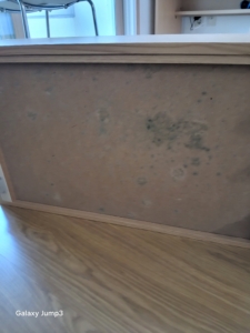 MDF(합판) 소재 특성상 흡습력이 높아 곰팡이가 깊숙이 번식.