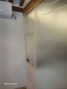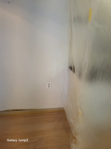 벽지와 석고보드를 철거하고, 내부 단열재 점검 후 오염된 부분은 폐기.