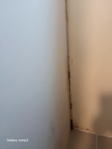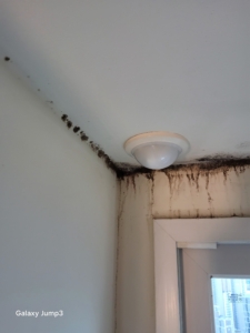 초기에는 눈에 잘 띄지 않았으나 시간이 지나면서 곰팡이가 번식해 검은 곰팡이 얼룩과 수분 자국이 생겼습니다.