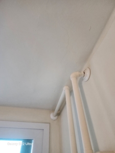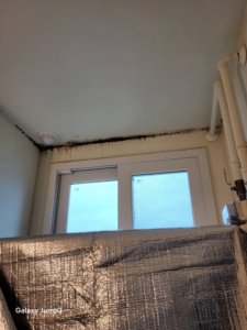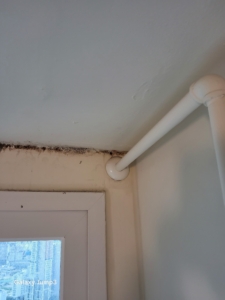 초기에는 눈에 잘 띄지 않았으나 시간이 지나면서 곰팡이가 번식해 검은 곰팡이 얼룩과 수분 자국이 생겼습니다.
