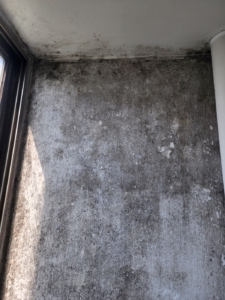 • 특히 창틀 주변과 보일러 인접 벽체는 검은 곰팡이 집중 분포