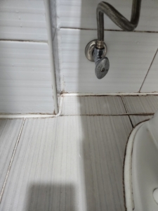 화장실 타일 줄눈(백시멘트) 노후 및 곰팡이 오염이 진행된 상태에서