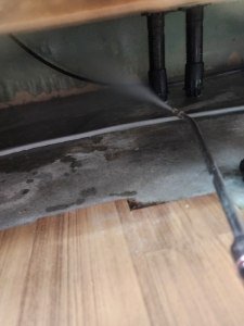 오염된 바닥과 벽면, 배수관 주변을 집중 청소.