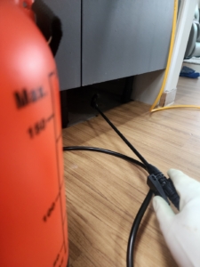 곰팡이 냄새 제거를 위해 탈취제 분사 및 환기 작업 수행.